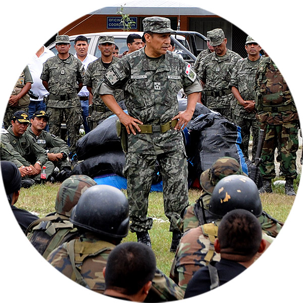 Como oficial del Ejército, Ollanta Humala ha combatido al terrorismo en las zonas de emergencia, localidades en las que respetó estrictamente los derechos humanos de la ciudadanía y más bien, junto a otros oficiales, internamente rebatían las órdenes emanadas por el poder político y la alta oficialidad en el Manual del Ejército ME 41-7 de julio de 1989, que años más tarde, Ollanta Humala denunció públicamente.
